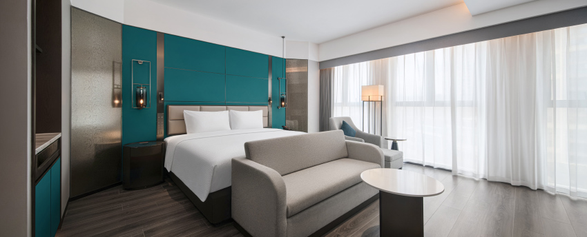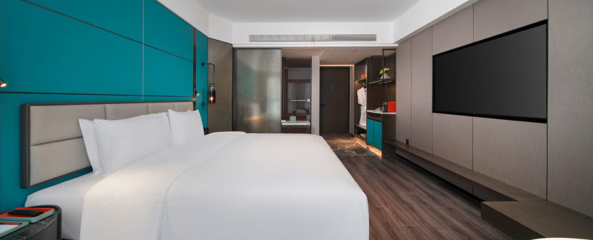 位于酒店12-13层,面积65-68平米,颠覆传统酒店设计,更轻松多元化的生活,突破设计边界;宽敞阔气客厅,全明落地窗,坐拥天际景观;甄选美标棉织品、金可儿床垫;海信65寸超清液晶电视,畅想完美视觉体验。房间配备衣帽间、浴缸、胶囊咖啡机、冰箱、保险箱、免费迷你吧、瓶装水、茶包等,更可体验免费无线网络、智能机器人免费送货,虚拟现实无缝对接。所有房间均为无烟房。