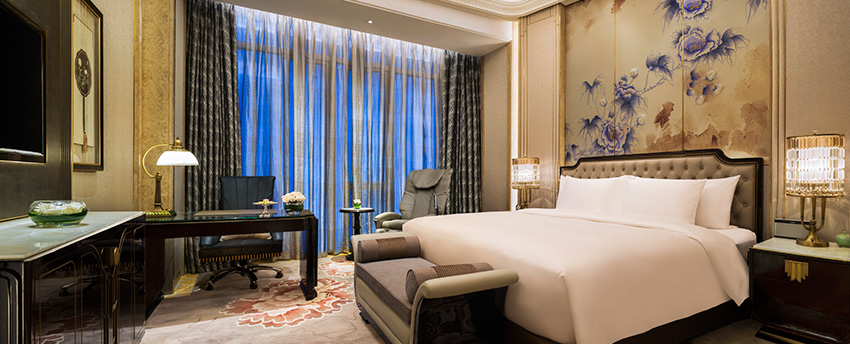 华丽典雅的豪华客房,以艺术装饰风格打造极富东方温情的住宿空间。客房内设有舒适的“万达文华之床”以及万达独创的“妙梦”助眠系列,为宾客打造云端一般的优质睡眠体验。豪华的浴室设有独立的浴缸与热带雨林式淋浴设施,并提供豪华沐浴及护理产品,让宾客尽享舒心沐浴体验。客房配备宽屏液晶电视,海量国际卫星频道和无线网络等现代化设施,为宾客打造恣意优雅的住宿体验。