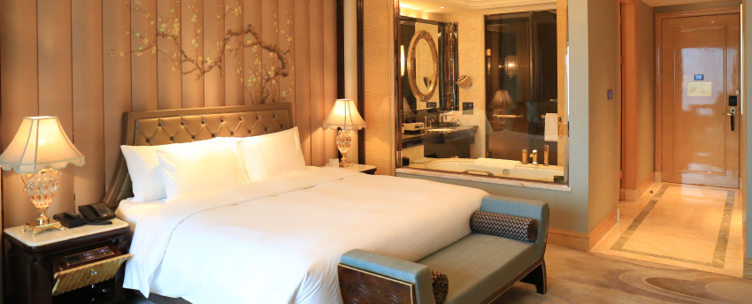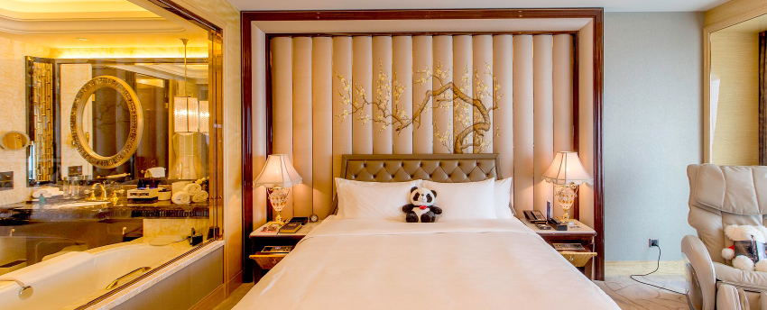 华丽典雅的豪华客房,以艺术装饰风格打造极富东方温情的住宿空间。客房内设有舒适的“万达文华之床”以及万达独创的“妙梦”助眠系列,为宾客打造云端一般的优质睡眠体验。豪华的浴室设有独立的浴缸与热带雨林式淋浴设施,并提供豪华沐浴及护理产品,让宾客尽享舒心沐浴体验。客房配备宽屏液晶电视,海量国际卫星频道和无线网络等现代化设施,为宾客打造恣意优雅的住宿体验。