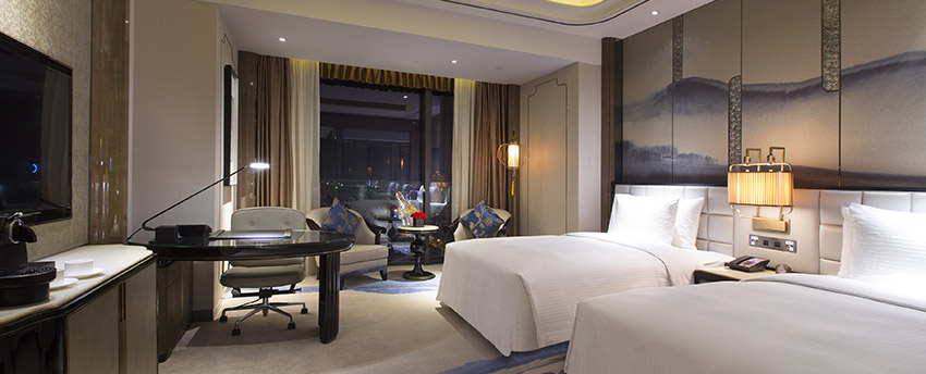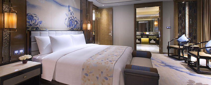 华丽典雅的豪华客房,以艺术装饰风格打造极富东方温情的住宿空间。客房内设有舒适的“万达文华之床”以及万达独创的“妙梦”助眠系列,为宾客打造云端一般的优质睡眠体验。豪华的浴室设有独立的浴缸与热带雨林式淋浴设施,并提供豪华沐浴及护理产品,让宾客尽享舒心沐浴体验。客房配备宽屏液晶电视,海量国际卫星频道和无线网络等现代化设施,为宾客打造恣意优雅的住宿体验。