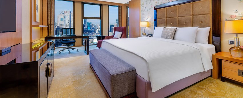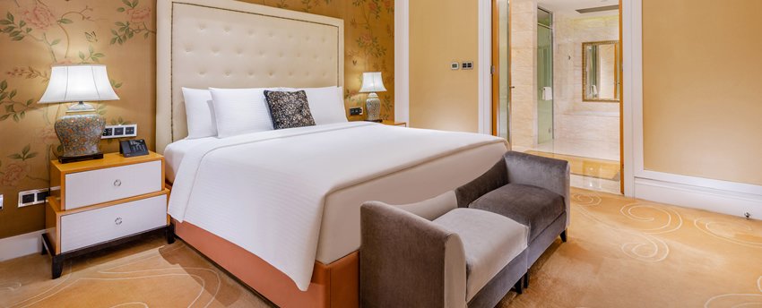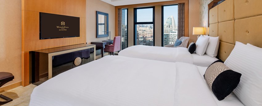 华丽典雅的豪华客房,以艺术装饰风格打造极富东方温情的住宿空间。客房内设有舒适的“万达文华之床”以及万达独创的“妙梦”助眠系列,为宾客打造云端一般的优质睡眠体验。豪华的浴室设有独立的浴缸与热带雨林式淋浴设施,并提供豪华沐浴及护理产品,让宾客尽享舒心沐浴体验。客房配备宽屏液晶电视,海量国际卫星频道和无线网络等现代化设施,为宾客打造恣意优雅的住宿体验。