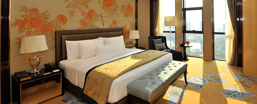 华丽典雅的豪华客房,以艺术装饰风格打造极富东方温情的住宿空间。客房内设有舒适的“万达文华之床”以及万达独创的“妙梦”助眠系列,为宾客打造云端一般的优质睡眠体验。豪华的浴室设有独立的浴缸与热带雨林式淋浴设施,并提供豪华沐浴及护理产品,让宾客尽享舒心沐浴体验。客房配备宽屏液晶电视,海量国际卫星频道和无线网络等现代化设施,为宾客打造恣意优雅的住宿体验。