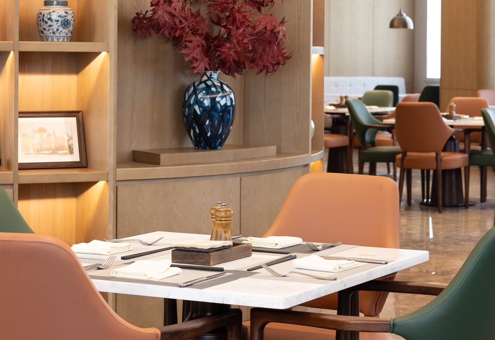 花苑餐厅提供超长“待机”时间早餐服务——3个半小时,包括中式早点、烘焙面包、谷物麦片、蛋奶和水果沙拉等50种以上的丰富美食和饮品,并增加武汉“老通城”老字号豆皮等武汉本地特色早餐,让宾客足不出户就能享受到本地特色美食,花苑餐厅用美味唤醒您的每一天。