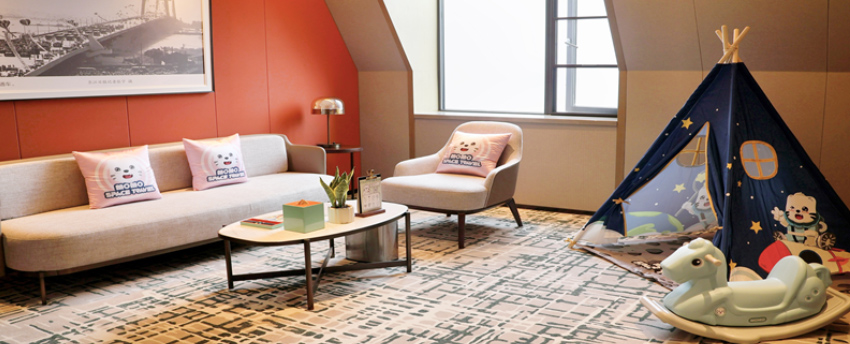 萌虎乐园亲子颐华套房位于酒店20层,面积70-80平方米,充满童趣的起居及休憩空间,在这里尽享亲子亲密时光,放肆快乐。客房全明外窗,可欣赏城市景观;卫生间干、湿分离,特供欧舒丹洗护套装及意大利AccaKappa高端洗护用品配合热带雨林式沐浴体验;甄选美标棉织品、国际品牌“金可儿“床垫:房内配备55寸-65寸超清液晶电视,绿营系统联动,开机自动显示专属定制入住问候。一键投屏,畅享完美视觉体验。房问配备戴森吹风机、智能马桶、免费迷你吧、矿泉水、茶包等,更可体验免费高速无线网络、智能机器人免费送货。