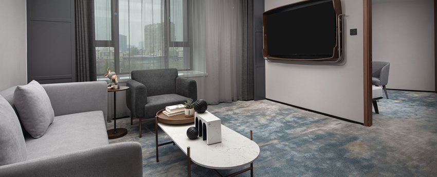悦华套房位于酒店10层,面积72平米,简欧风设计以暖灰色为主,点缀红色单品,沉稳大气又时尚不张扬。具备独立客厅、独立卧室、两个独立卫生间,开放式客厅,舒适宽敞,以商务简约的现代设计个性十足风格为旅行人士呈现别具一格的休憩空间。卫生间干、湿功分离;意大利高端小众洗护品牌Acca Kappa白苔系列洗浴、洗发和护肤用品配合热带雨林式沐浴体验,甄选美标棉织品、国际品牌斯林百兰床垫。房内配备65寸超清液晶电视,一键投屏,畅享完美视觉体验。房间配备星级智能马桶,提供保险箱,迷你冰箱,雀巢胶囊咖啡,房间提供免费迷你吧,瓶装水、茶包等,更可体验免费高速无线网络,虚拟现实无缝对接。所有房间均为无烟房。