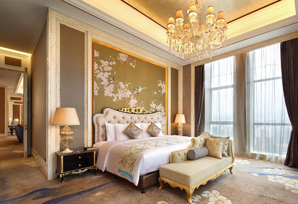 华丽典雅的豪华客房,以艺术装饰风格打造极富东方温情的住宿空间。客房内设有舒适的“万达文华之床”以及万达独创的“妙梦”助眠系列,为宾客打造云端一般的优质睡眠体验。豪华的浴室设有独立的浴缸与热带雨林式淋浴设施,并提供豪华沐浴及护理产品,让宾客尽享舒心沐浴体验。客房配备宽屏液晶电视,海量国际卫星频道和无线网络等现代化设施,为宾客打造恣意优雅的住宿体验。