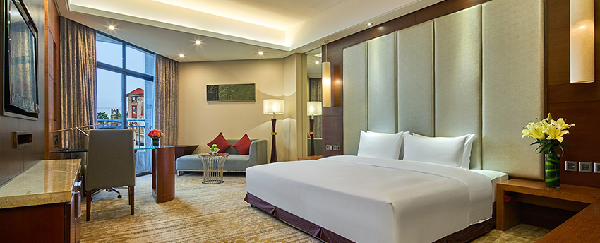 华丽典雅的豪华客房,以艺术装饰风格打造极富东方温情的住宿空间。客房内设有舒适的“万达文华之床”以及万达独创的“妙梦”助眠系列,为宾客打造云端一般的优质睡眠体验。豪华的浴室设有独立的浴缸与热带雨林式淋浴设施,并提供豪华沐浴及护理产品,让宾客尽享舒心沐浴体验。客房配备宽屏液晶电视,海量国际卫星频道和无线网络等现代化设施,为宾客打造恣意优雅的住宿体验。