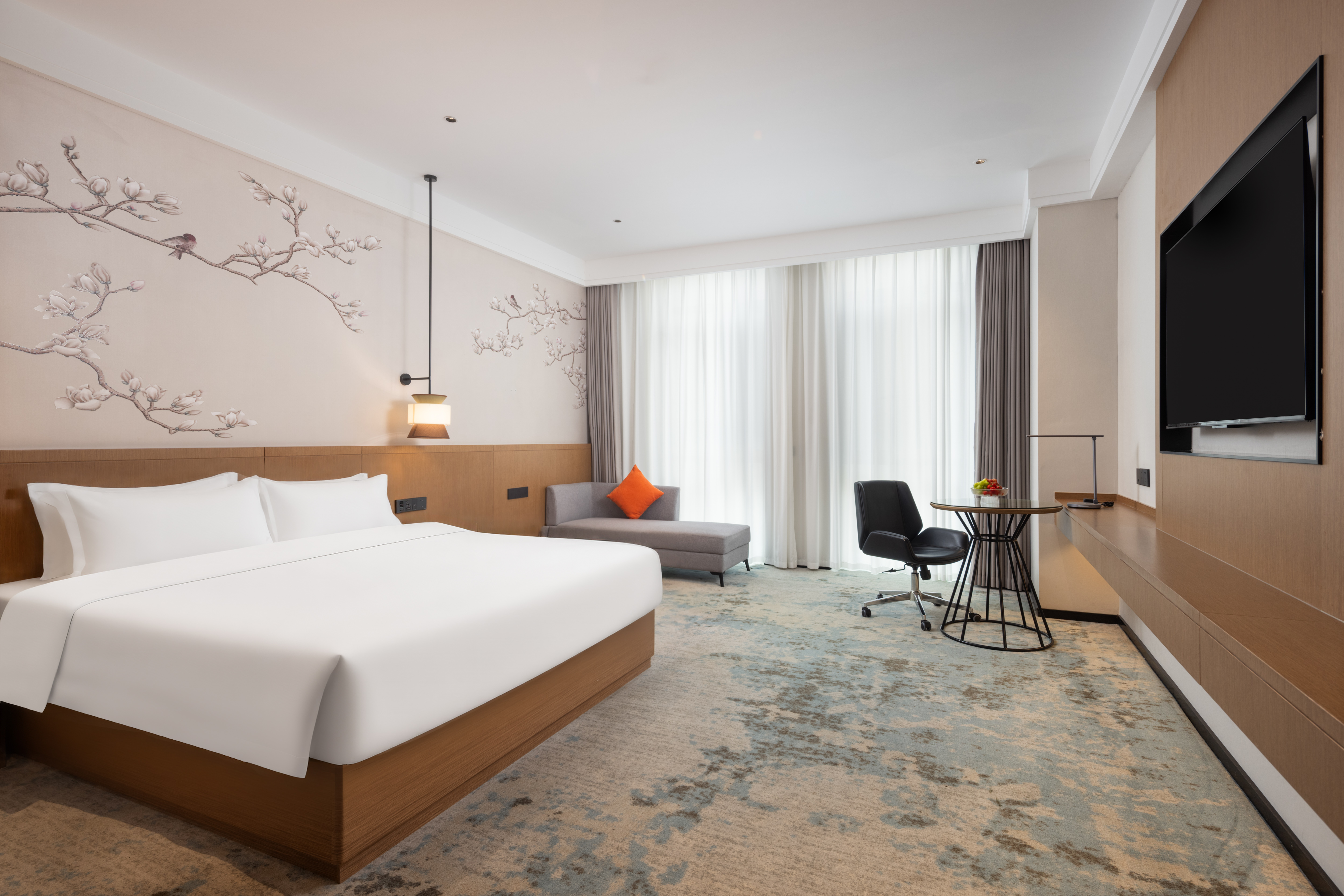 华丽典雅的豪华客房,以艺术装饰风格打造极富东方温情的住宿空间。客房内设有舒适的“万达文华之床”以及万达独创的“妙梦”助眠系列,为宾客打造云端一般的优质睡眠体验。豪华的浴室设有独立的浴缸与热带雨林式淋浴设施,并提供豪华沐浴及护理产品,让宾客尽享舒心沐浴体验。客房配备宽屏液晶电视,海量国际卫星频道和无线网络等现代化设施,为宾客打造恣意优雅的住宿体验。