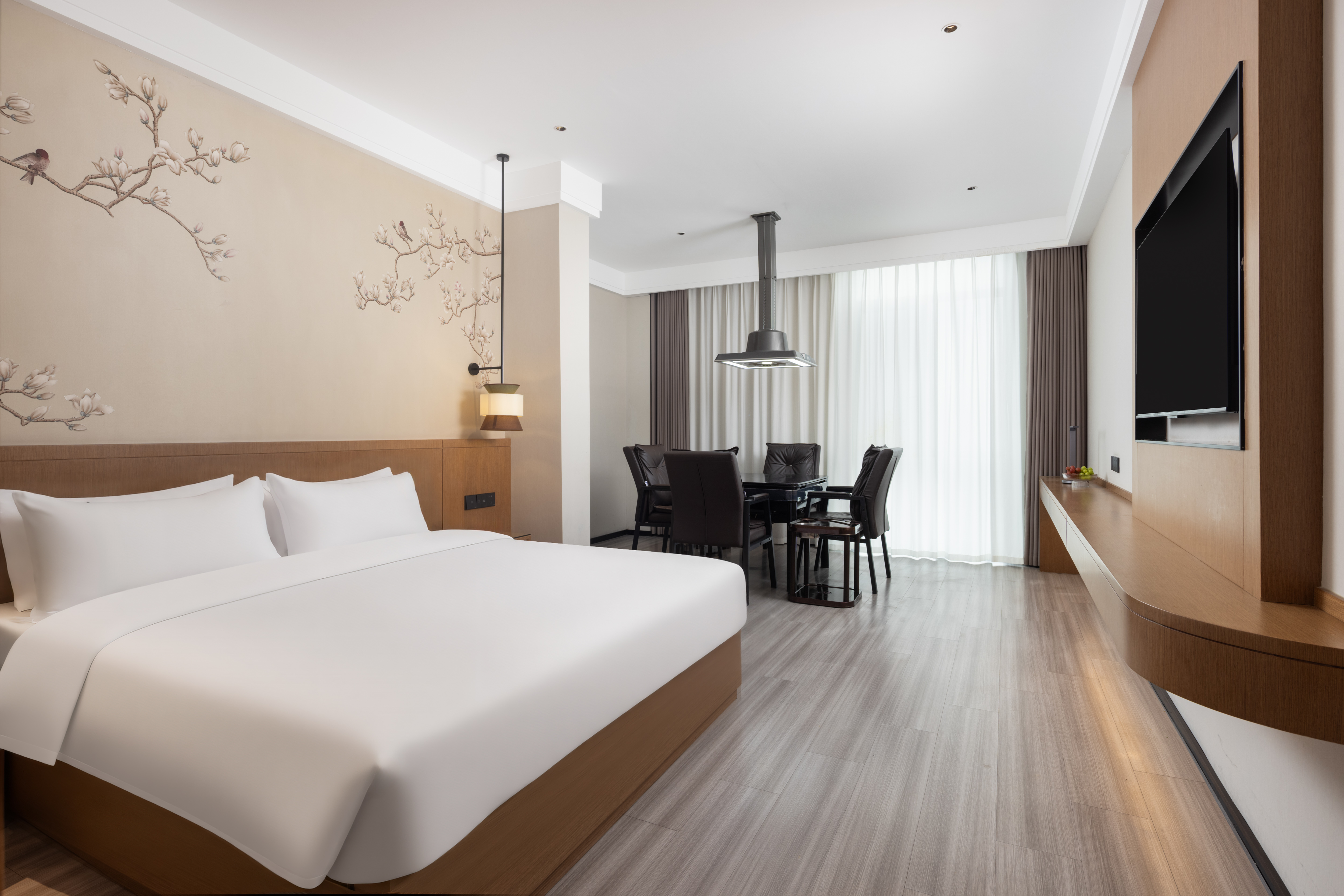 Yue suite is 80 square meters and located on the 6th to 7th floors of the hotel. Each room is equipped with satellite channel/cable television, an LCD TV/plasma TV, shower facilities, a hairdryer, complimentary bottles of water and tea bags, a mini bar, a refrigerator, LAN and WiFi wireless, etc. All rooms is non-smoking.