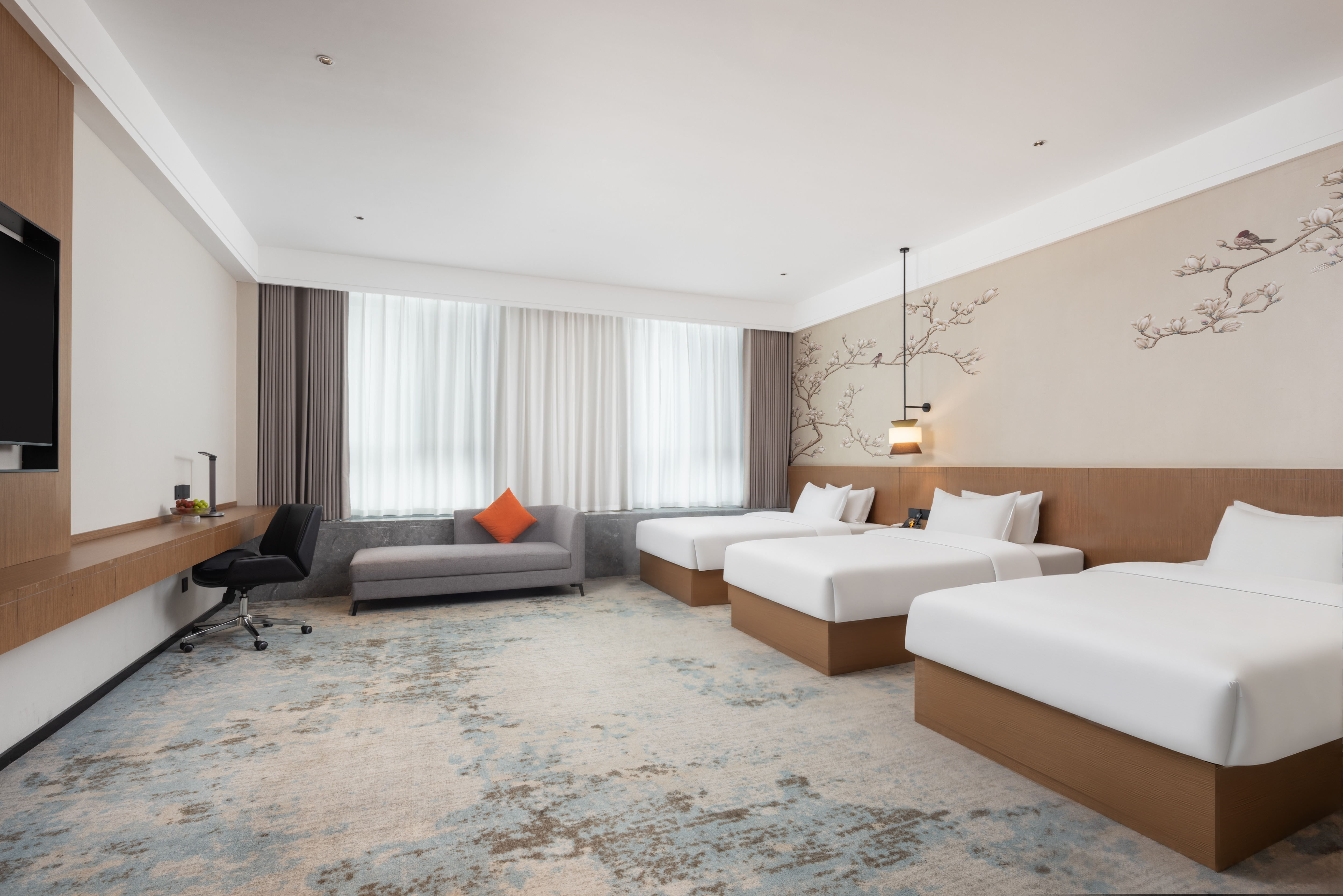 Deluxe three-bed rooms are a minimum of 43 square meters and located on the 3rd to 7th floors of the hotel. Each room is equipped with satellite channels / cable television, an LCD TV / plasma TV, shower facilities, a hairdryer, complimentary bottles of water and tea bags, LAN and wireless Wi-Fi, etc. All rooms is non-smoking.