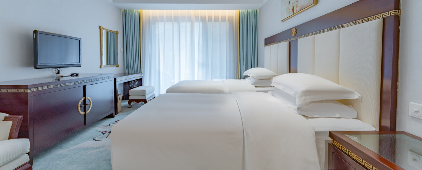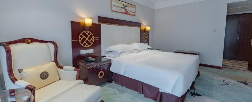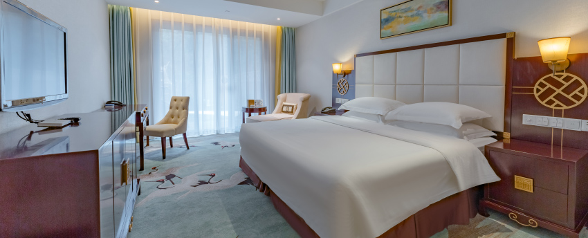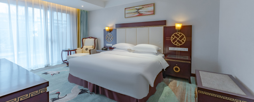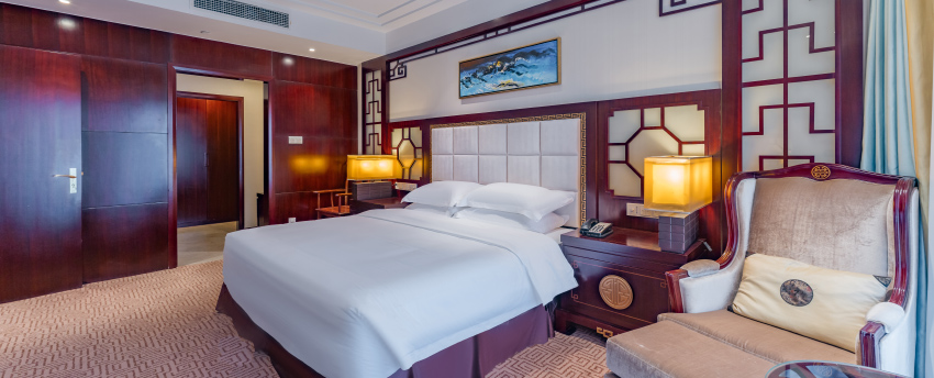 华丽典雅的豪华客房,以艺术装饰风格打造极富东方温情的住宿空间。客房内设有舒适的“万达文华之床”以及万达独创的“妙梦”助眠系列,为宾客打造云端一般的优质睡眠体验。豪华的浴室设有独立的浴缸与热带雨林式淋浴设施,并提供豪华沐浴及护理产品,让宾客尽享舒心沐浴体验。客房配备宽屏液晶电视,海量国际卫星频道和无线网络等现代化设施,为宾客打造恣意优雅的住宿体验。