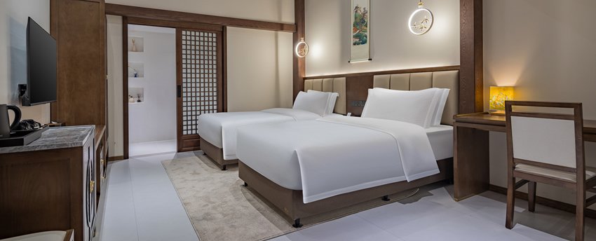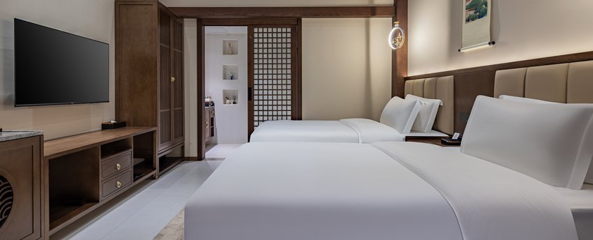 华丽典雅的豪华客房,以艺术装饰风格打造极富东方温情的住宿空间。客房内设有舒适的“万达文华之床”以及万达独创的“妙梦”助眠系列,为宾客打造云端一般的优质睡眠体验。豪华的浴室设有独立的浴缸与热带雨林式淋浴设施,并提供豪华沐浴及护理产品,让宾客尽享舒心沐浴体验。客房配备宽屏液晶电视,海量国际卫星频道和无线网络等现代化设施,为宾客打造恣意优雅的住宿体验。