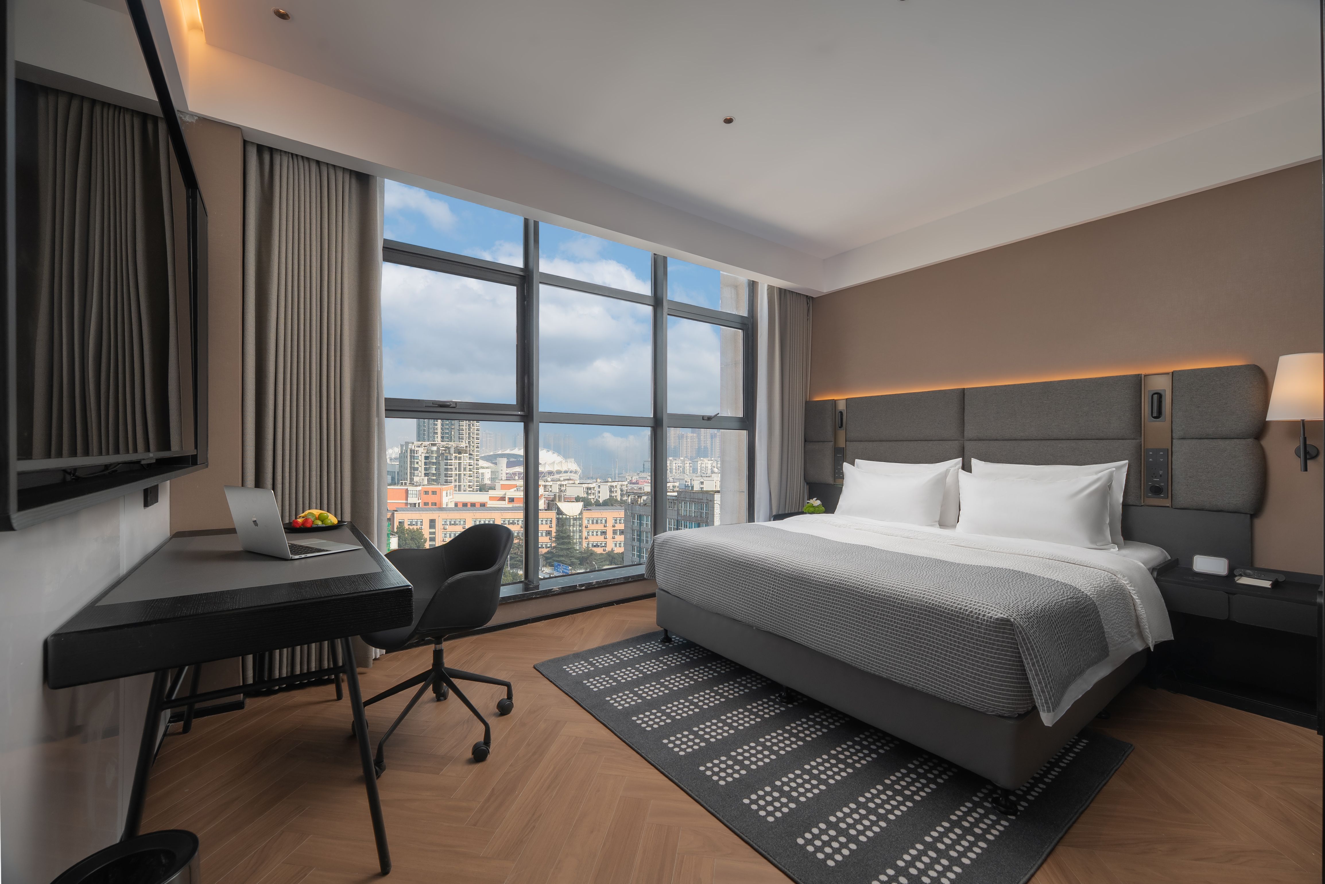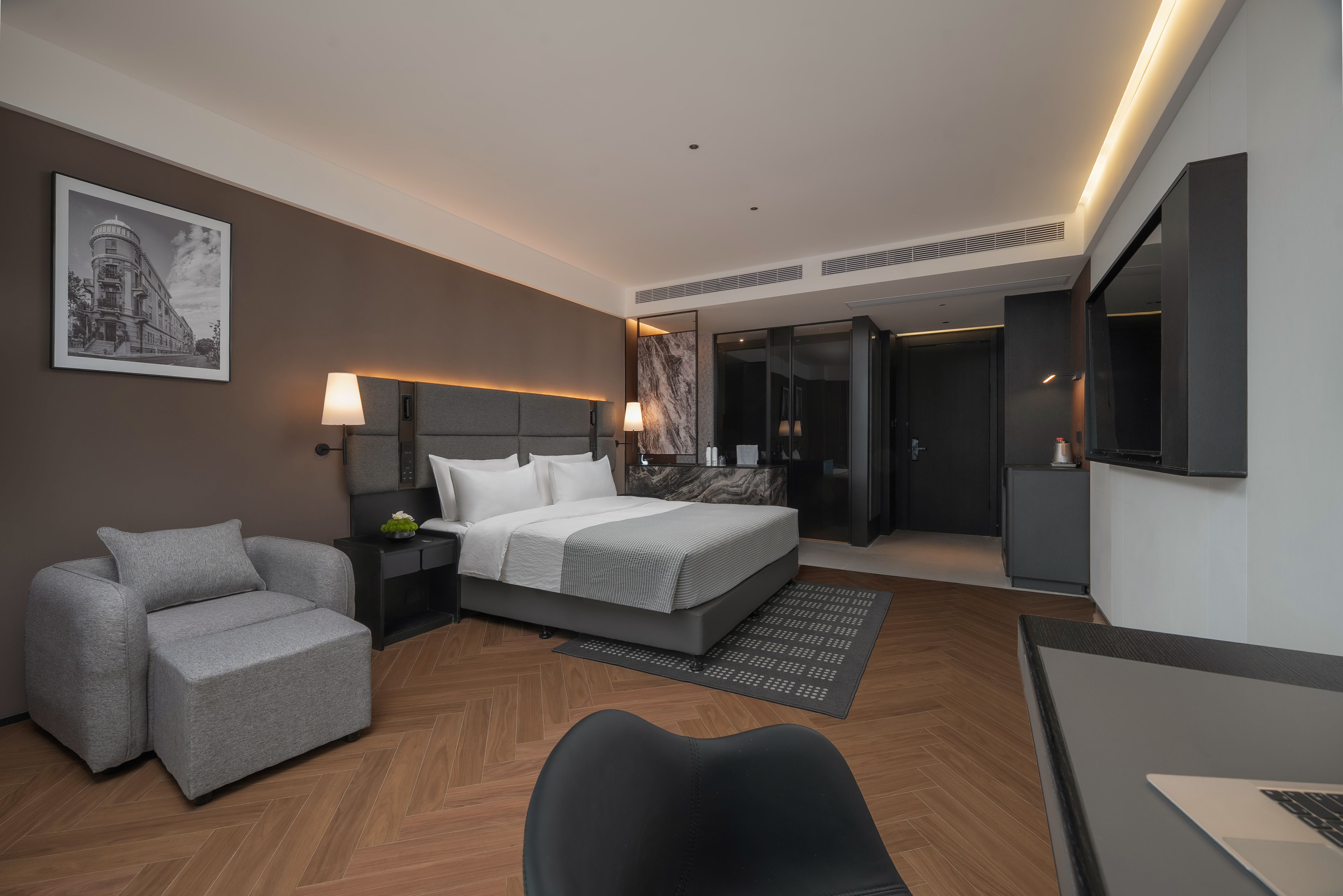 Deluxe king-bed rooms are a minimum of 30 square meters and located on the 7th to 9th floors of the hotel. Each room is equipped with a 65-inch TV, shower facilities, a hairdryer, complimentary bottles of water, Tea bags and wireless Wi-Fi, etc. All rooms is non-smoking.