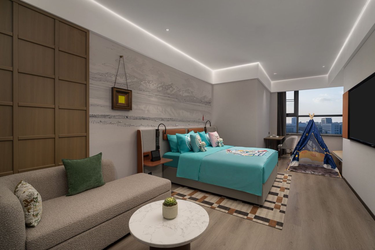 Two Children Family Suite rooms,58 -60 square meters and located on the 3th to 11th floors of the hotel. Each room is equipped with a 65-inch LCD TV, shower facilities, a hairdryer, complimentary bottle of water, a mini bar, a refrigerator, LAN and WiFi wireless, etc.