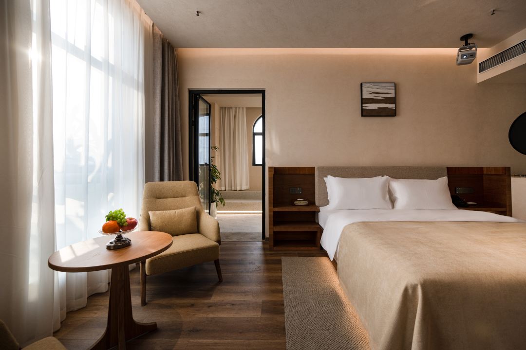 Located on the 3rd to 5th floors of Buildings B and C of the hotel, this room covers approximately 50 square meters with a neat and square layout, offering comfort and ample space. It is equipped with a private soaking pool and designed in an elegant and dignified wabi-sabi style, creating a distinctive resting space for travelers.