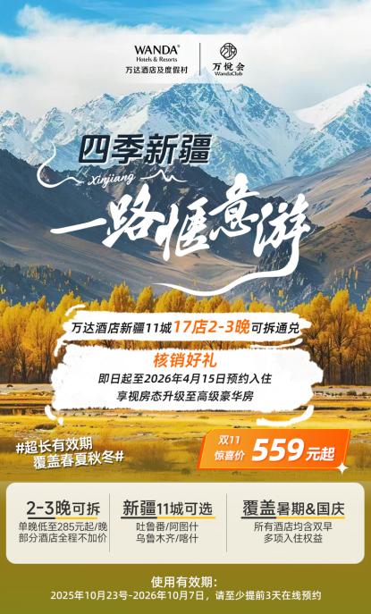 在产品设计上,万达酒店精准覆盖多元客群,既有高性价比全国通兑套餐,也有聚焦区域深度游的特色目的地产品;也首次引入康养旅居概念,通过“万游纪”系列产品切入银发经济与慢生活赛道。这种分层清晰、场景丰富的货盘策略,不仅提升了转化效率,更强化了品牌在不同细分市场的渗透力。