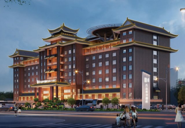 武当山万达悦华酒店·朝圣之前位于武当山景区山门内核心位置--景区入口,交通便利,距离福银高速武当山出口约3 7公里,十堰机场28公里。